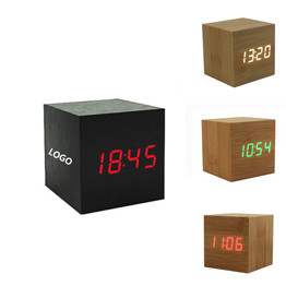 Promotional Electronic Wooden LED Alarm Clock Home Colck Logo Customized Images |